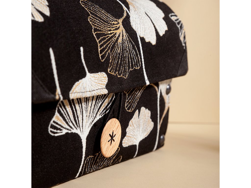 Kistáska divatos ginkgo-mintával, fekete háttérrel, elegáns arannyal és fehérrel szőve, tölgyfa oldallal